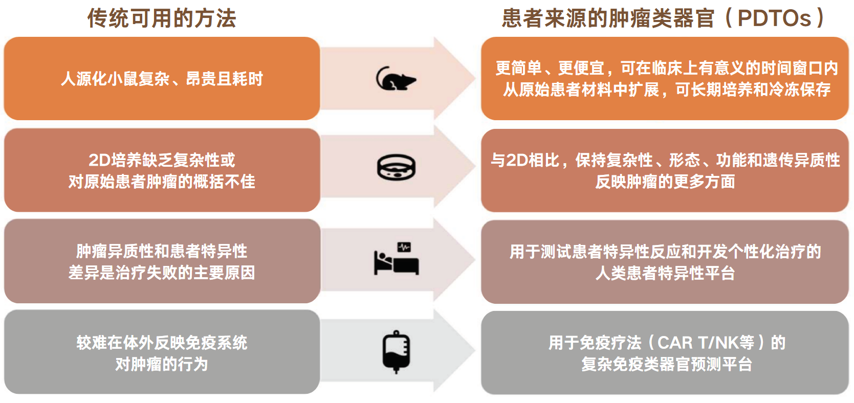 PDTOs 能够成功再现体内肿瘤的复杂性,因此可以为模拟人类癌症提供一个稳健的体外系统,具有作为临床前人类平台的巨大潜力,可用于测试患者特异性反应和开发个性化治疗方案。