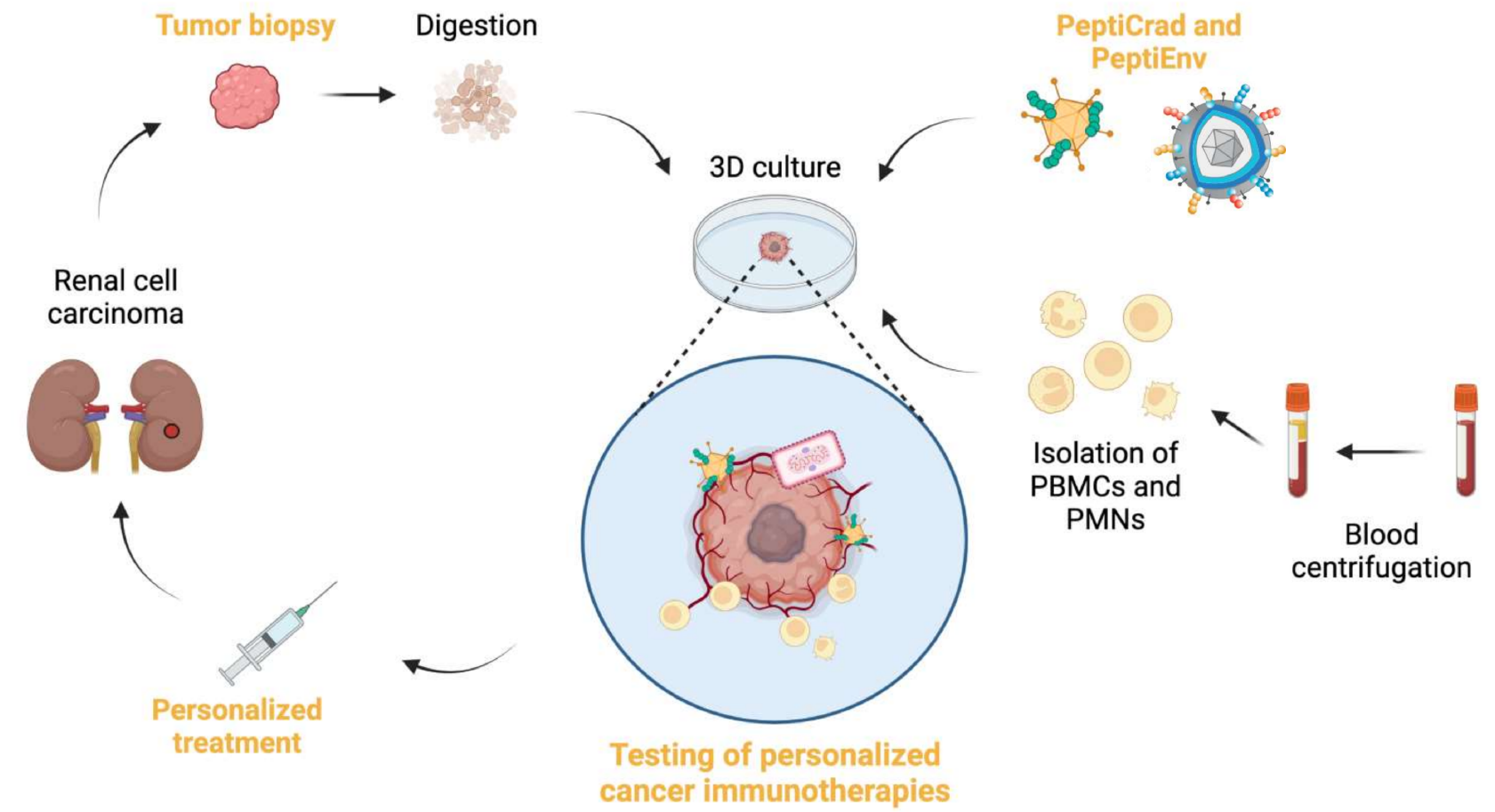 在深入表征患者肿瘤后,我们进一步设计个性化的免疫治疗方法(例如,使用肿瘤肽修饰的溶瘤病毒PeptiCrad和PeptiEnv),以特异性地靶向患者的肿瘤(图1)。