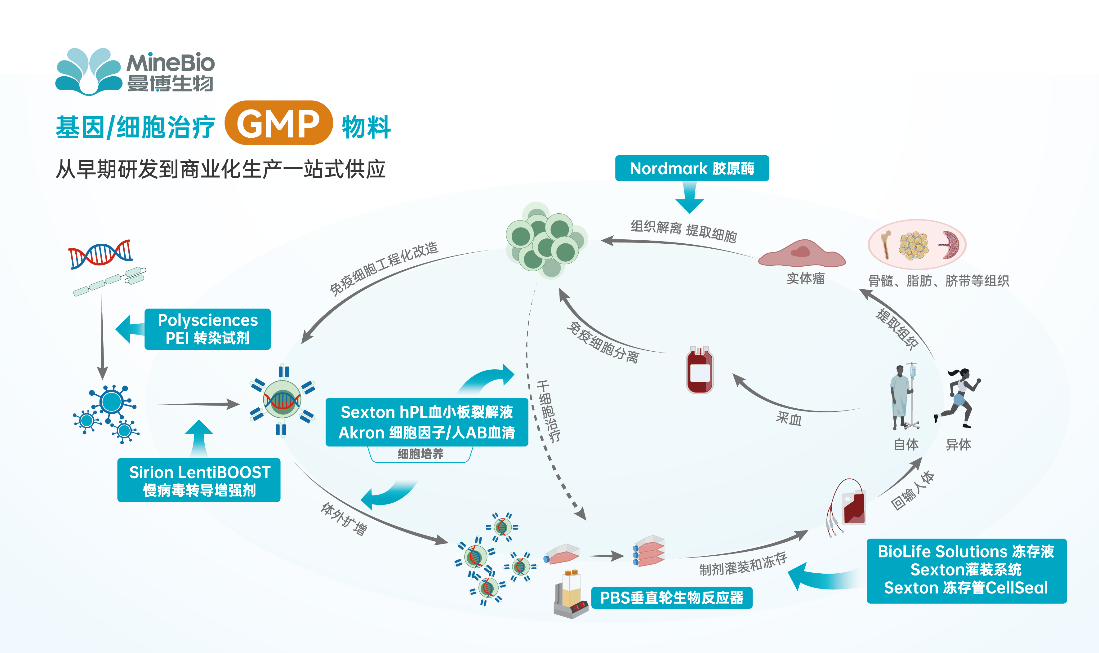 为此,上海曼博生物严格筛选国际创新且经过同行验证的产品和技术,引入中国市场进行开发、孵育和推广,致力于传递全球创新产品和先锋技术。希望帮助国内研发工作者快速地接触世界范围内的技术革命,分享研发工具进步带来的技术红利,带来更多细胞基因治疗领域GMP物料,最终为细胞、基因治疗产业,生物制品行业,再生医学领域乃至整个生命科学行业赋能!