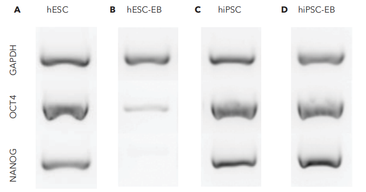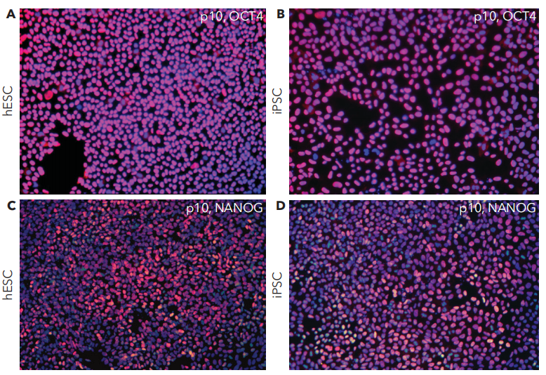 hESCs和hiPSCs中在CT521上培养多能性和分化标记物表达正常