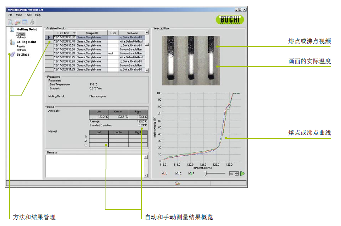1、可以选择手动或自动的熔点和沸点测定