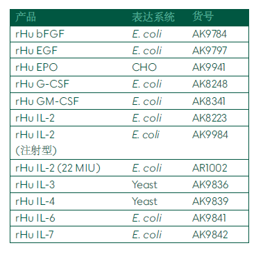 重组细胞因子和生长因子产品目录
