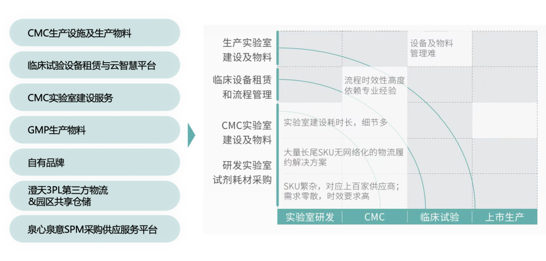 泉心泉意以数字化运营平台联动销售、客服、寻源、技术、采购、物流六大作业模块,覆盖80%的主要生命科学产业园创新Biotech客户,逐步形成了服务产品矩阵,始终伴随和赋能客户全生命周期的成长。