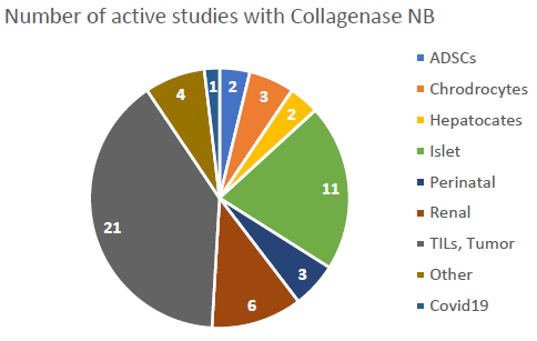 目前有多款使用Nordmark胶原酶的ATMP产品已经在临床阶段。在美国,使用胶原酶产品的临床试验中约有25%的临床试验使用的是Nordmark的胶原酶NB系列产品。