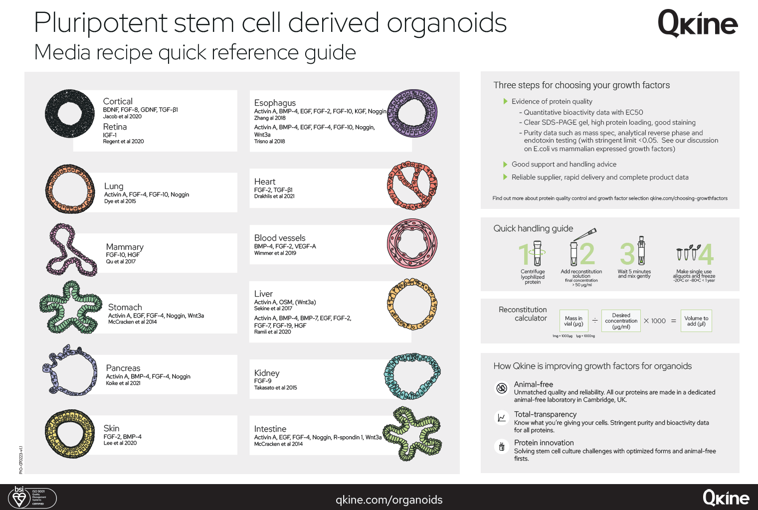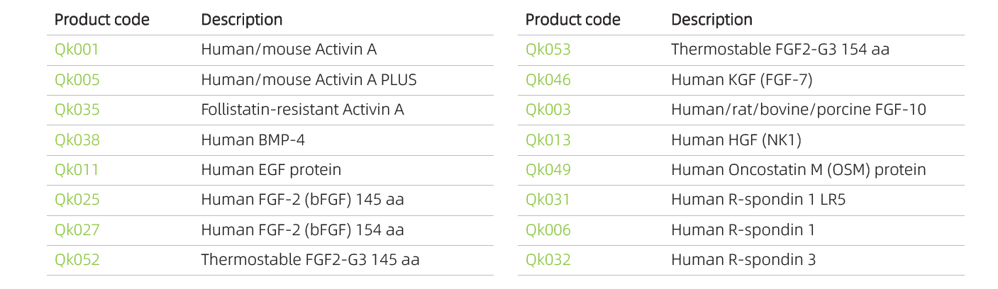 Qkine TGF-β1 PLUS蛋白是一种不含动物成分的重组人类转化生长因子β1(TGF-β1)蛋白,可获得高度可重复的结果,并与化学成分限定的干细胞培养基和类器官培养相兼容。