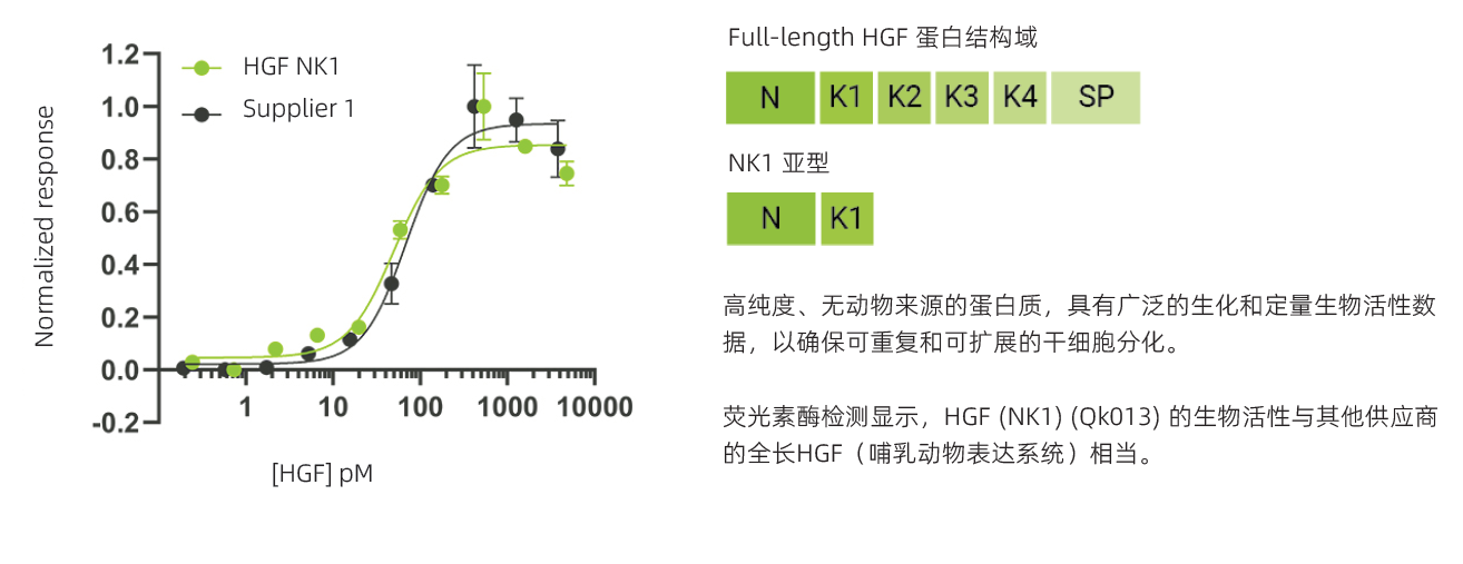 这种天然存在的、无动物来源的20 kDaHGF亚型,适用于化学成分限定的培养基和可重复的放大培养。
