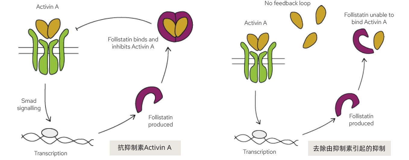 抗抑制素Activin A蛋白(FRACTA)已被工程化设计,以防止其与天然抑制剂抑制素结合。在体内,Activin A的活性由抑制素调节,抑制素是一种高亲和性抑制剂。因此,由于抑制素的积累和抑制,Activin A在干细胞培养中的活性会波动。