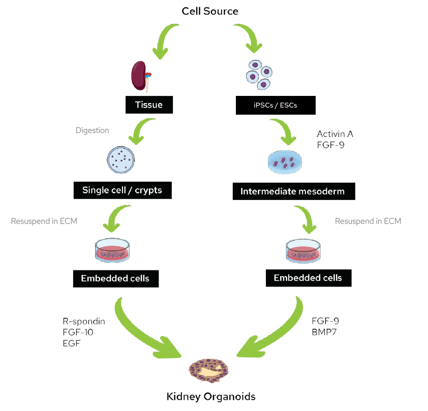 Chambers BE, Weaver NE, Wingert RA. The “3Ds” of Growing Kidney Organoids: Advances in Nephron Development, Disease Modeling, and Drug Screening. Cells. 2023;12(4):549.