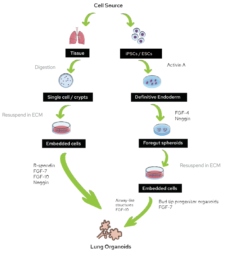 Miller AJ, Dye BR, Ferrer-Torres D, et al. Generation of lung organoids from human pluripotent stem cells in vitro. Nat Protoc. 2019;14(2):518-540.