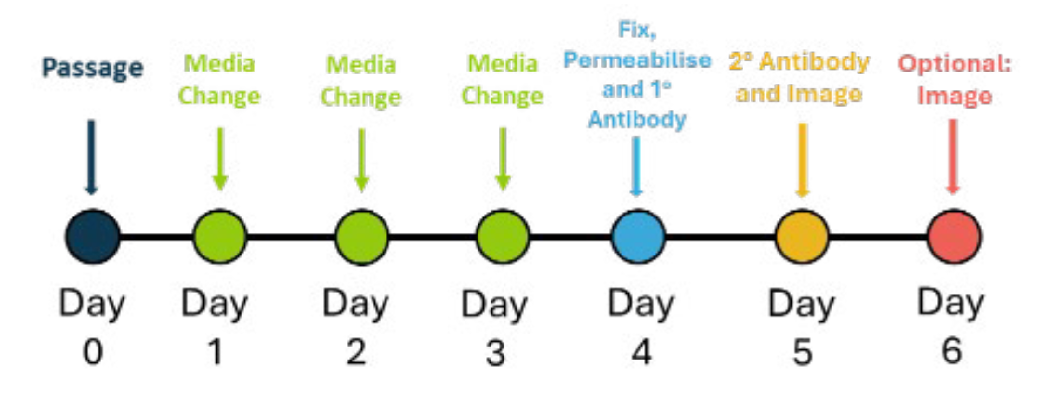中胚层分化工作流程示意图(图 1)概述了 iPSC 分化为中胚层的步骤以及通过测试中胚层表达标记来评估分化的步骤。