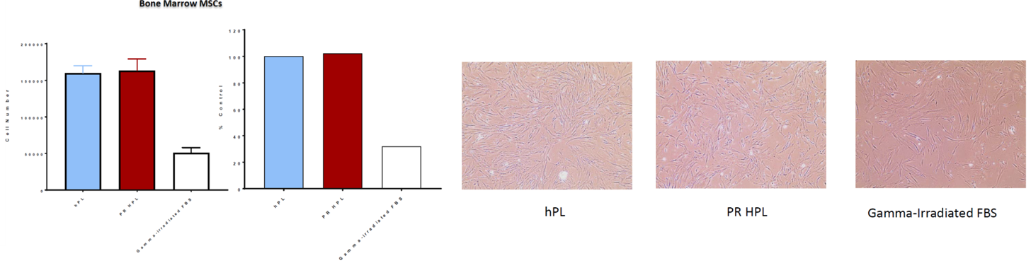 接着实验人员以骨髓来源的间充质干细胞(BM-MSCs)培养实验为例来验证PR工艺hPL的产品性能。