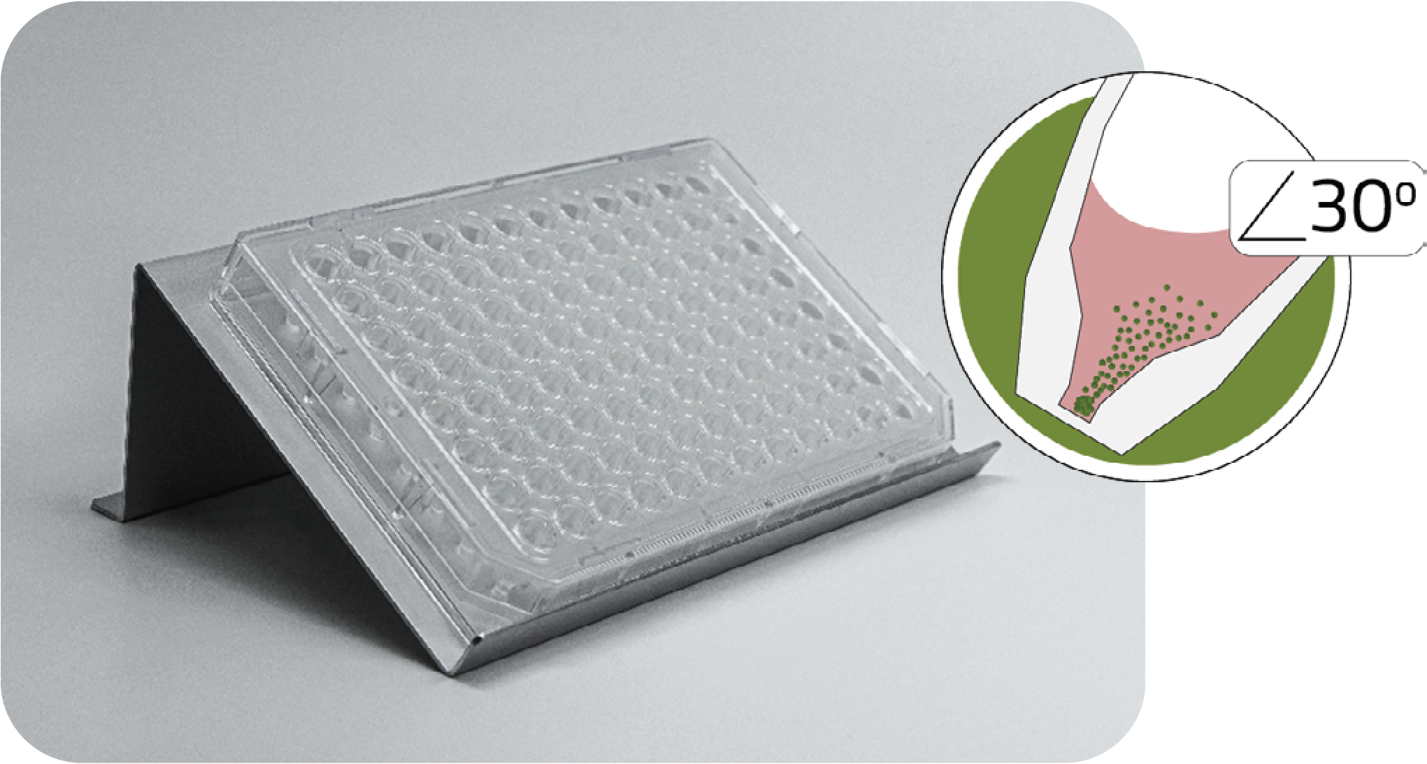 5. 将培养板转移至湿润的二氧化碳培养箱中,并保持斜立(与水平面夹角30度,图3)。此过程可以使用InSphero专门设计的Akura斜立支架(InSphero,CS-10-002-00)或将培养板的一侧垫高。