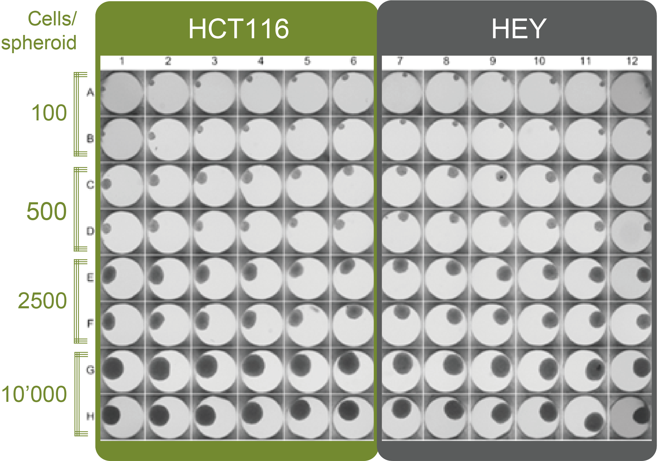 二、HCT-116和HEY的3D细胞模型构建(Akura 96孔微球培养板,图1)