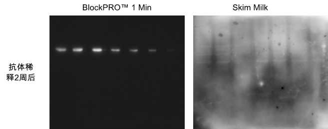 问题分析及解决办法:磷蛋白信号本来就不强,脱脂奶粉中含有磷蛋白,产生了更多的非特异性信号;无蛋白封闭液为纯化学配方,杜绝封闭液与蛋白样品之间的相互作用,使用更有效