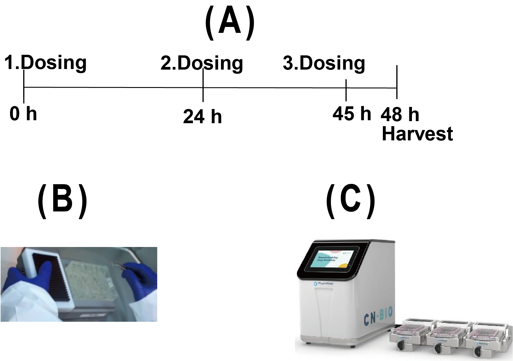 (A)采用与遗传毒性测试中体内试验相同的时间表进行处理,(B)用于培养共培养系统的板,(C)微生理系统(Microphysiological System,MPS)