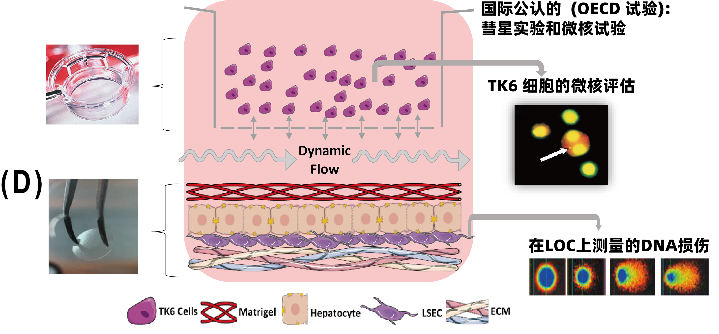 本研究的目标是重建具有人类代谢功能的肝脏芯片(Liver-on-Chip,LOC)的 3D 器官微环境,采用原代人肝细胞(PHH)或HepaRG细胞构建,与人类淋巴母细胞(TK6细胞)进行共培养,从而用于遗传毒性评估。