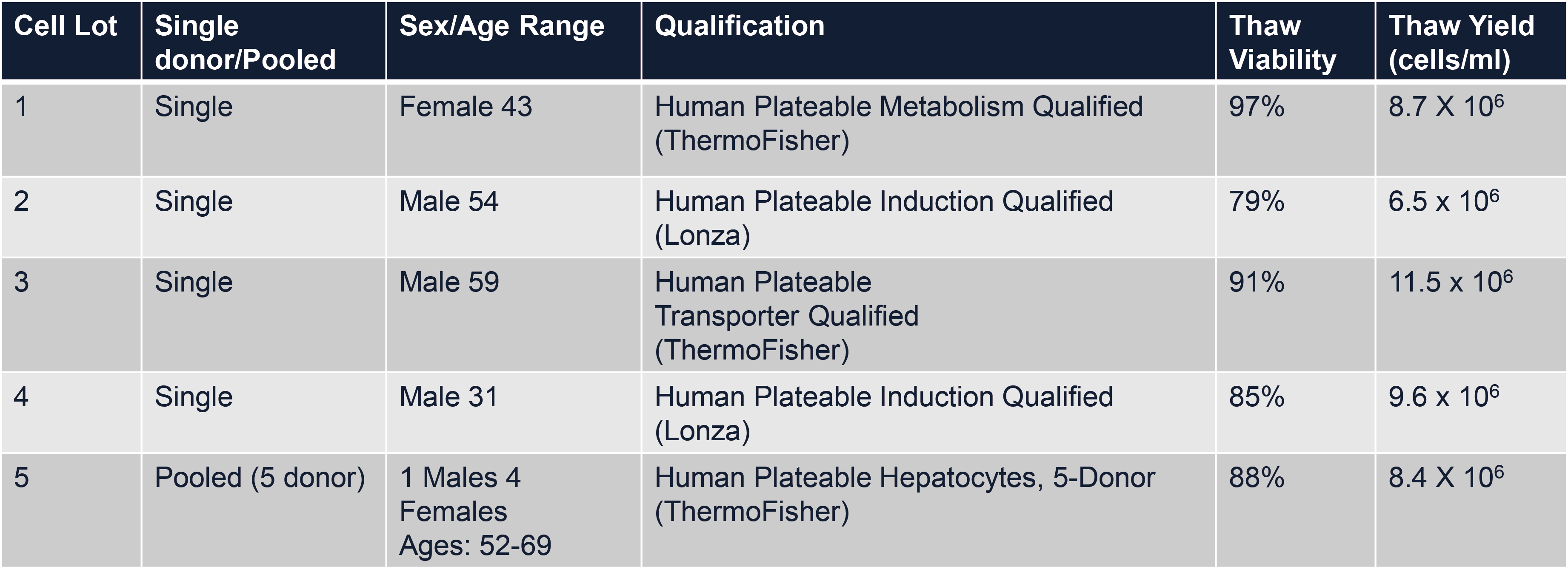 1.四个单一供体批次和一个 5 供体集合批次,分别暴露于低剂量(1-2 mM)、中剂量(3-5 mM)或高剂量(10-13 mM)的对乙酰氨基酚(APAP)中长达 96 小时(下表)。