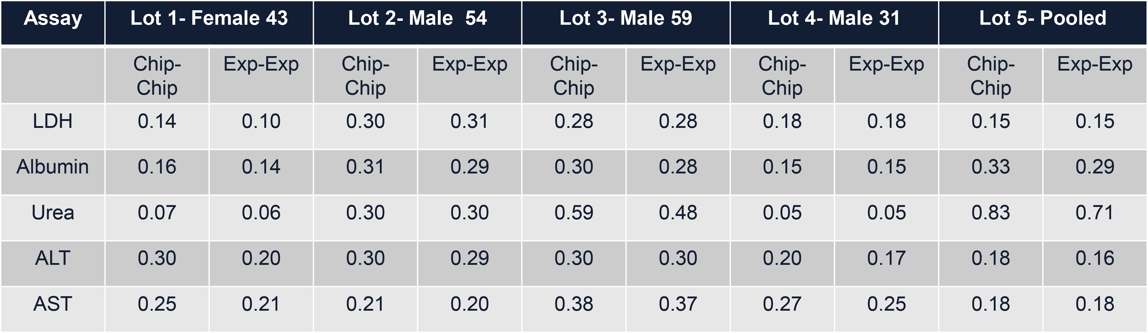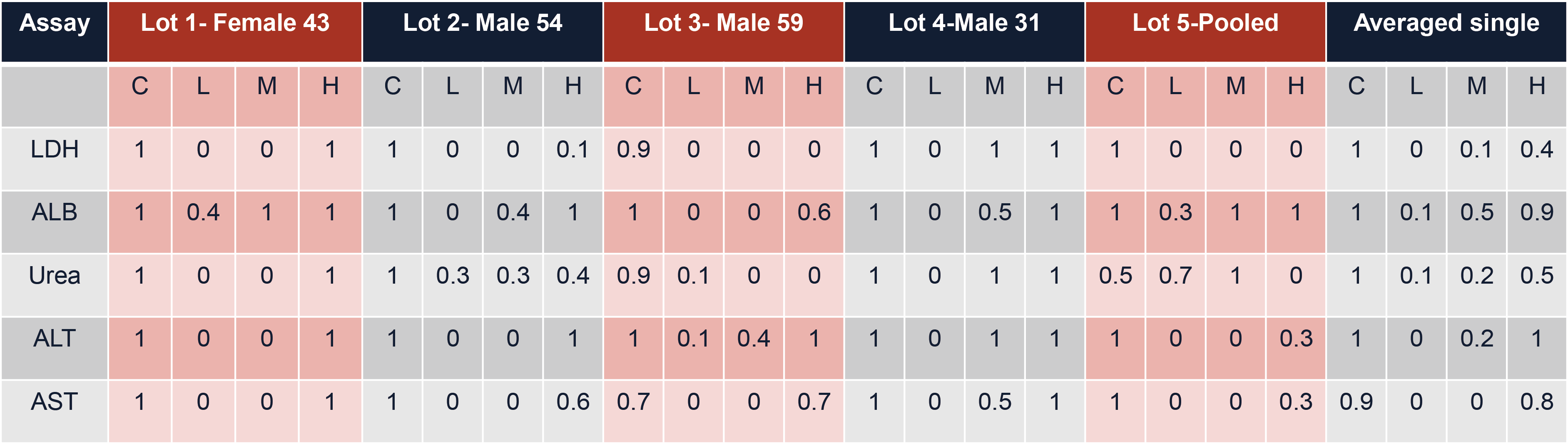 Ø ALT 在各批次之间的可靠性较高,而LDH似乎在某些批次中表现良好,但在其他批次中表现不佳。