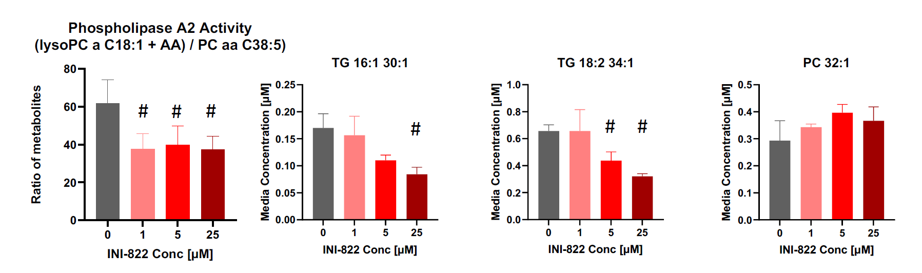 3、INI-822导致了在LoC系统中介质代谢组的变化,其中甘油三酯减少,磷脂增加。